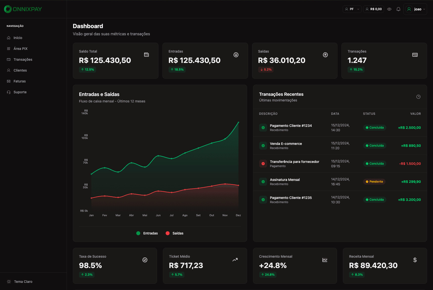 Envie e receba transferências, processe pagamentos via Pix, cartão e boleto, automatize suas finanças e centralize toda a gestão financeira em um só lugar, com a tecnologia da OnnixBank.